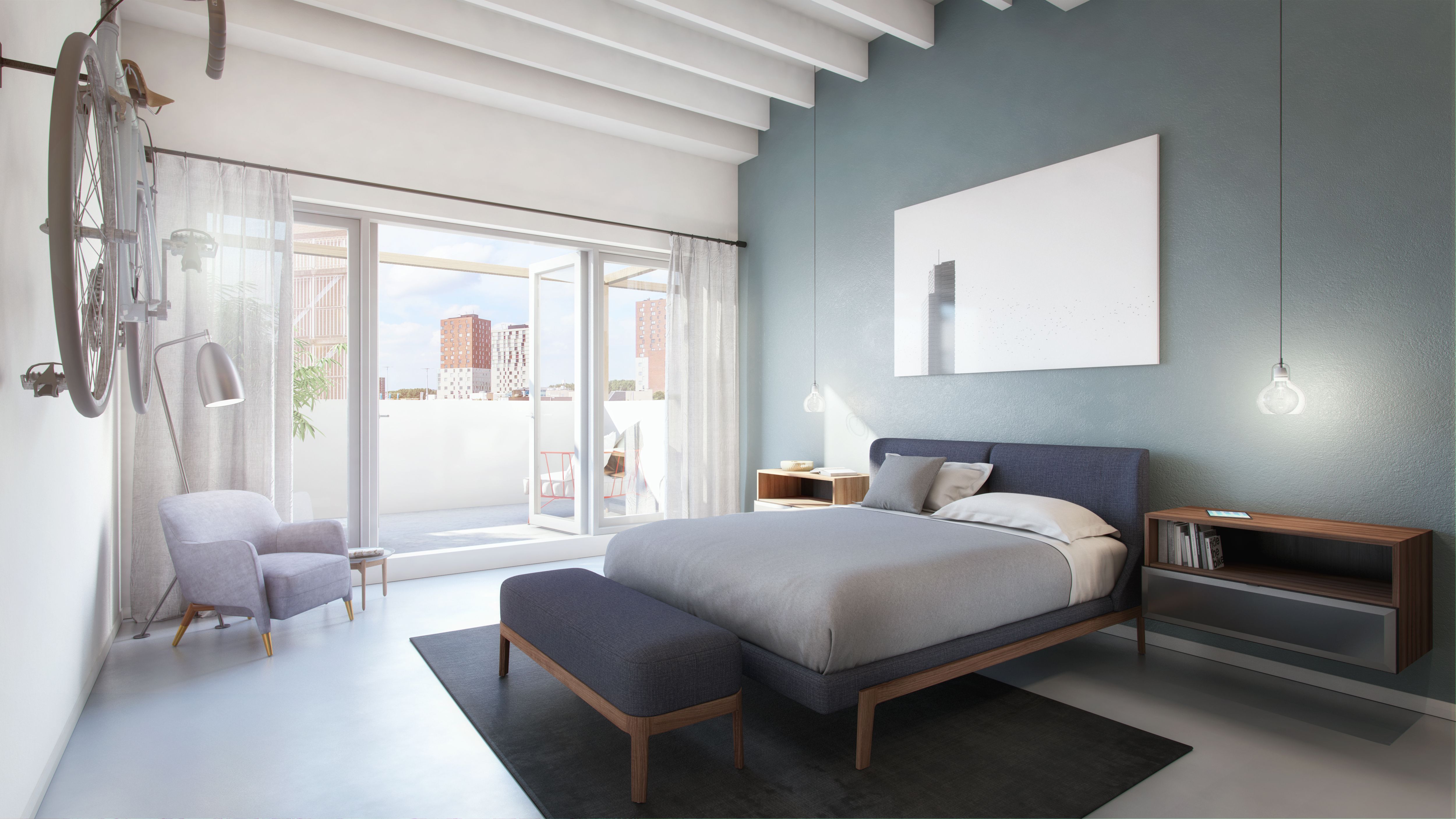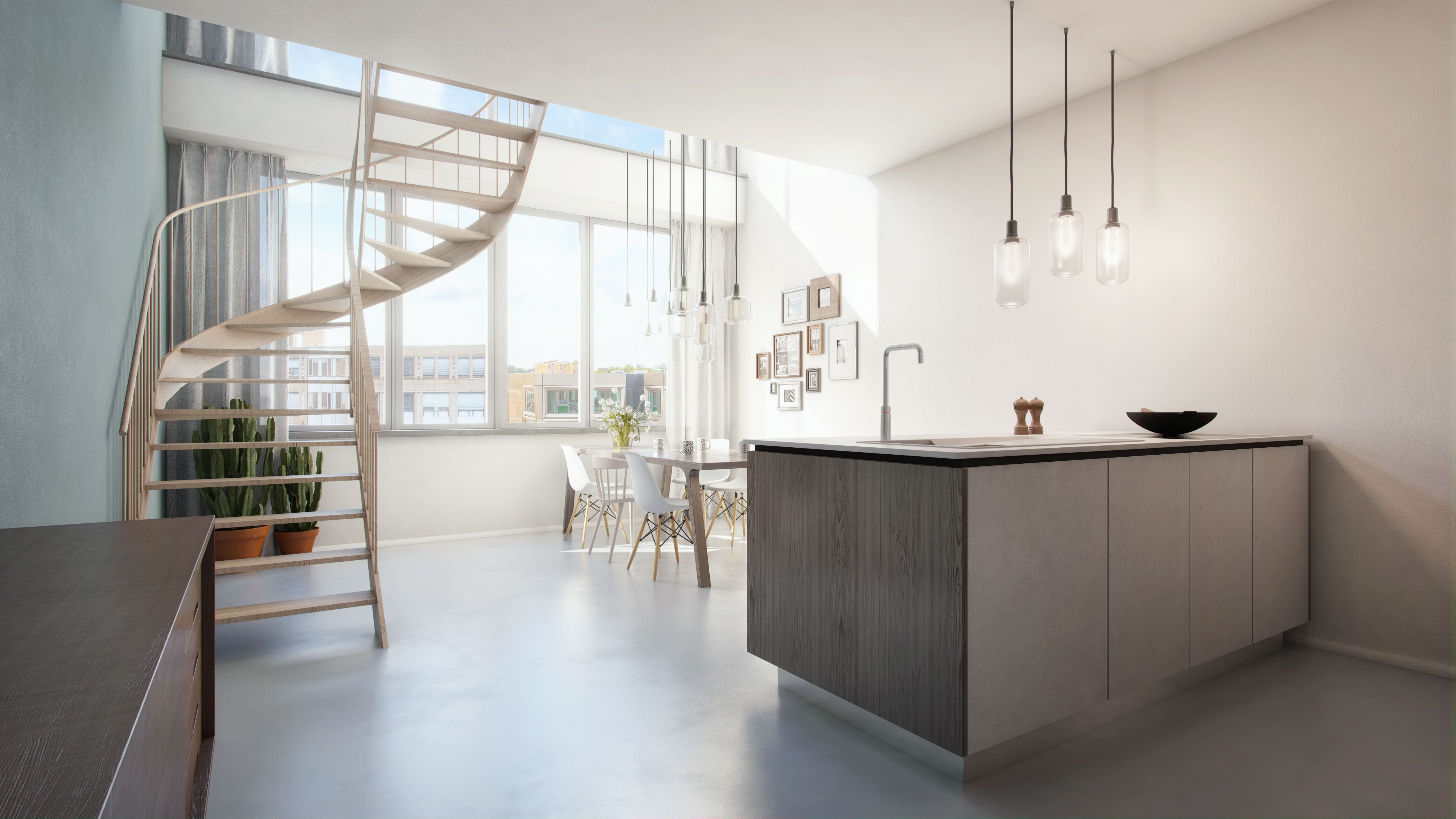 De loftwoningen kenmerken zich door de hoogte, de combinatie tussen veel lichtinval, industriële vormgeving, gebruik van vides, vrije indeelbaarheid, een open trap en grote balkons en terrassen.