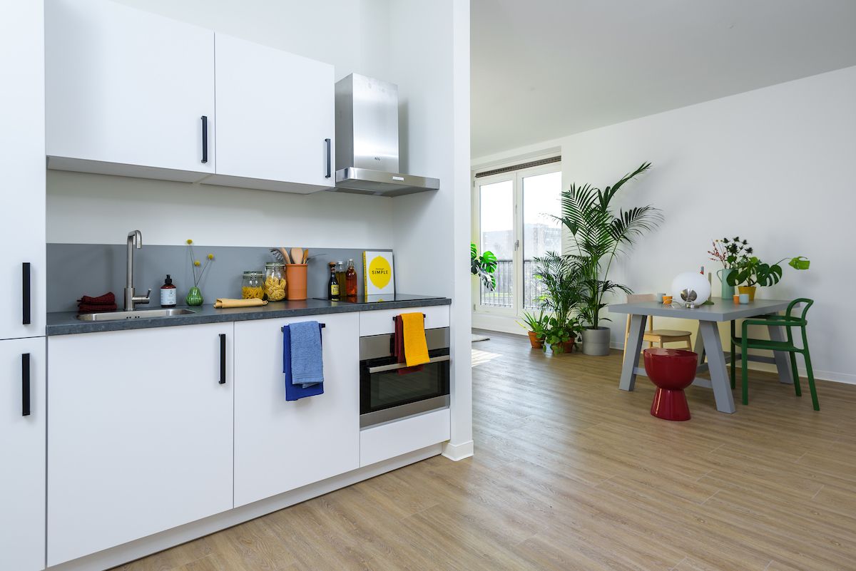 De huurwoningen zijn hoogwaardig afgewerkt met gestucte wanden en plafonds, luxe sanitair en tegelwerk, luxe keuken en standaard een pvc-vloer in het appartement.